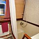 Galley: Well-equipped galley with 4 burner gas cooker, fridge, sink and drainer, work surfaces and storage space. There is a cafetiere, toaster and microwave in the galley. Sufficient saucepans, cooking utensils, crockery and cutlery etc. for the number of berths. Eco-friendly cleaning products. Cold tap water filter.