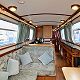 Highlights: A comfortable 6 berth narrowboat, suitable for family groups or two couples. Carpeted throughout. Cruiser stern with box seating, which is also used for storage. The boat is fitted with a 1600 watt inverter (240v supply) supplying household 3-pin sockets and carries a toaster, microwave, hair dryer and vacuum cleaner. Full central heating via radiators. Spacious forward cockpit seating for the whole crew. Towels can be provided for overseas visitors.