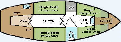 Cabins: Forward cabin with two draylon covered seats that convert to single beds at night.