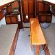 Saloon: Comfortable saloon with raising roof with 6ft headroom when moored (5ft or less when sailing). Two draylon covered sofas with storage under that convert to comfortable single beds at night.