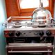 Galley: Small well designed galley with dual burner gas cooker, grill and oven. Electric fridge that can be left running overnight. Sufficient saucepans, cooking utensils, crockery and cutlery etc. for the number of berths.