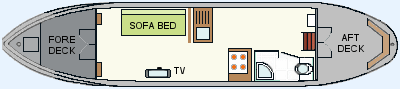 Saloon: Located at the front of the boat with double sofa bed, extendable oak worktop surfaces and oak stools for dining, LED digital TV/DVD with Freeview, DAB digital radio.