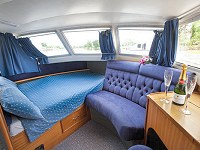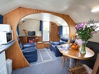 Facilities: An excellent choice for one couple - spacious and comfortable. Single floor level throughout. Comfortable armchairs and separate dining area. Fixed double in forward cabin. Steps to high level cockpit with sliding canopy. Warm air heating. Duvets and bed linen provided. Carpeting, draylon upholstery and curtains. 12v mobile phone charger socket. Flat screen colour TV/DVD, Freeview and radio/CD player. 240 volt supply with a maximum of 1800W usage (one 3-pin plug socket) with hair dryer.