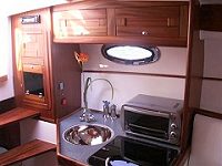 Fixed double bed in cabin under the rear sun deck/cockpit, accessed via the saloon/galley area (please note that this cabin has restricted headroom only). For alternative sleeping the settee area can convert to a double bed or 2 singles. Diesel-fired warm air heating. Easy access from the stern. Inverter provides 240V power (max 2000W) with 3 pin standard plug socket. Colour TV/DVD player, CD/Radio.
