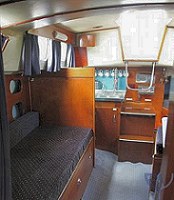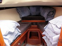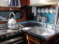 Facilities: Comfortable yacht with excellent sailing characteristics. Maintained to a high standard including change of carpets for each hire. Self-draining cockpit with sprayhood. Spacious saloon with fixed roof for full headroom. Well designed galley with two burner cooker, grill and oven. Hot water and electric refrigerator. Saloon with settee converting to 2 double berths. Razor point. Gas heater in the saloon area. Duvets and draylon upholstery. Sea toilet with wash basin. Shower. Wet / dry hanging locker.