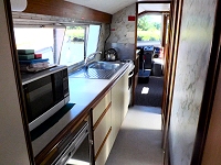 Well equipped galley with fridge & gas cooker (oven hob and grill) and microwave.